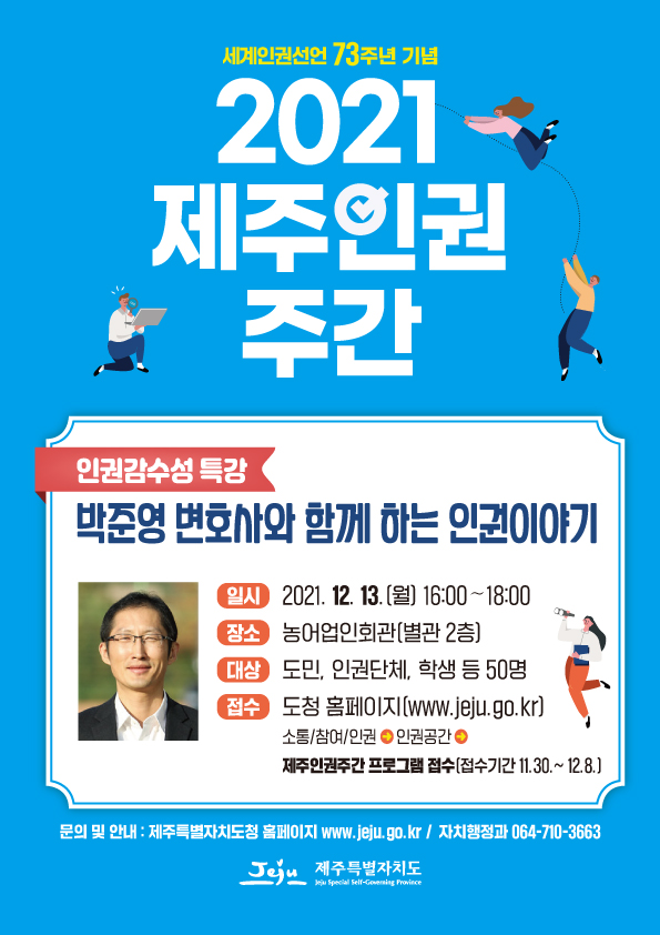 2021 제주인권주간을 맞이해 제주특별자치도에서는 인권감수성 특강을 추진합니다.