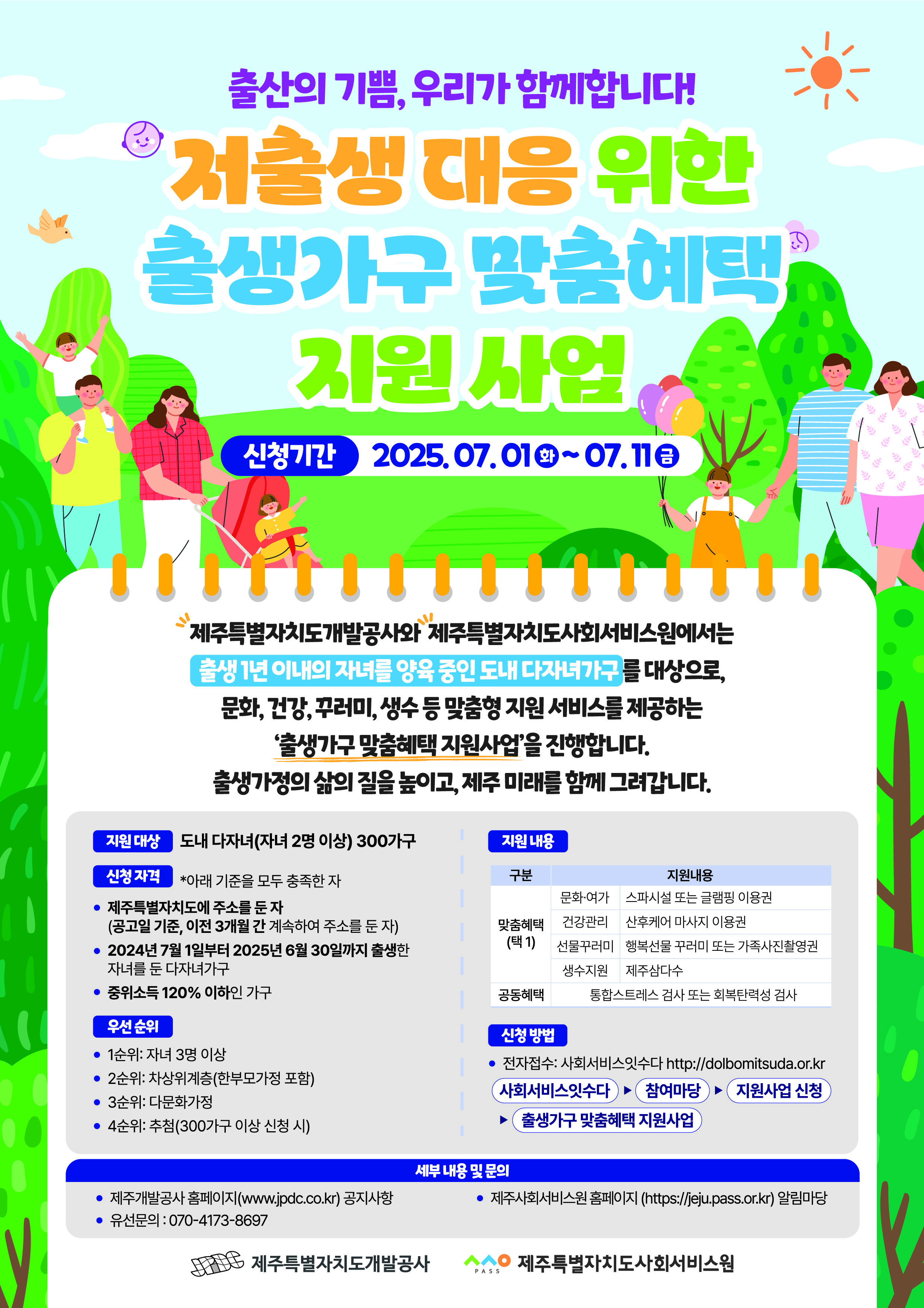 제주개발공사와 제주사회서비스원에서는 출생 1년 이내의 자녀를 양육 중인 도내 다자녀가구를 대상으로,