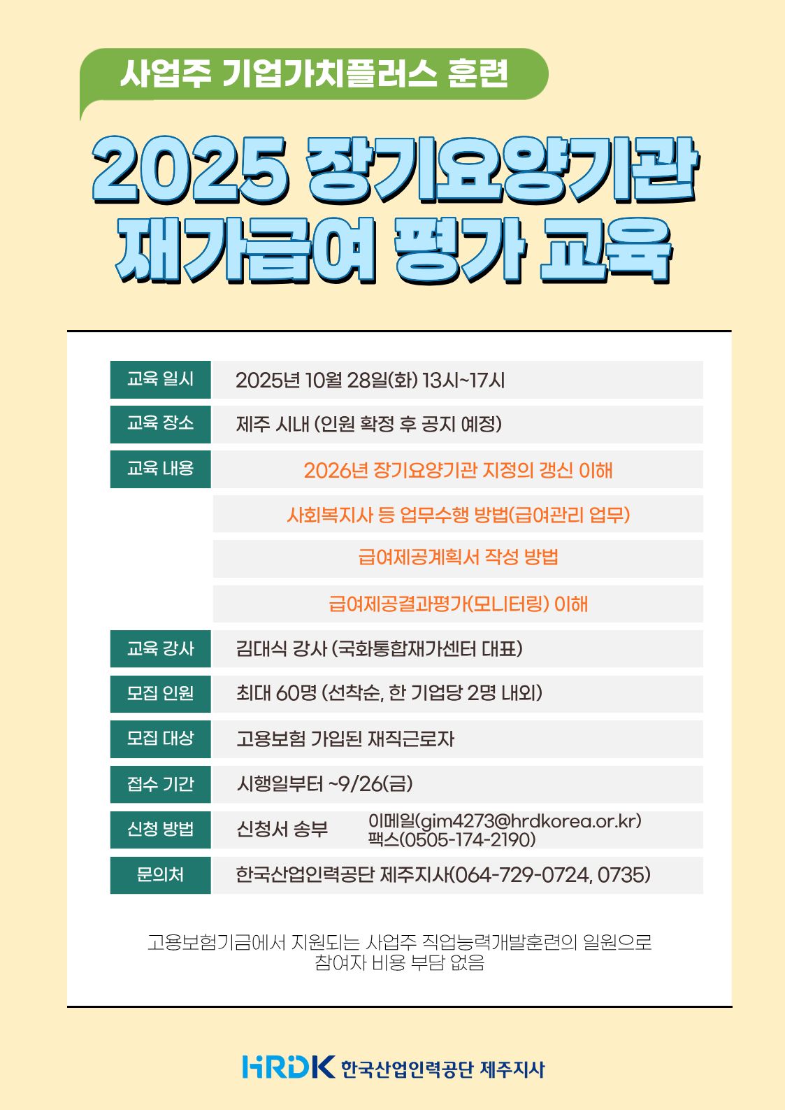 안녕하세요. 한국산업인력공단 제주지사입니다.