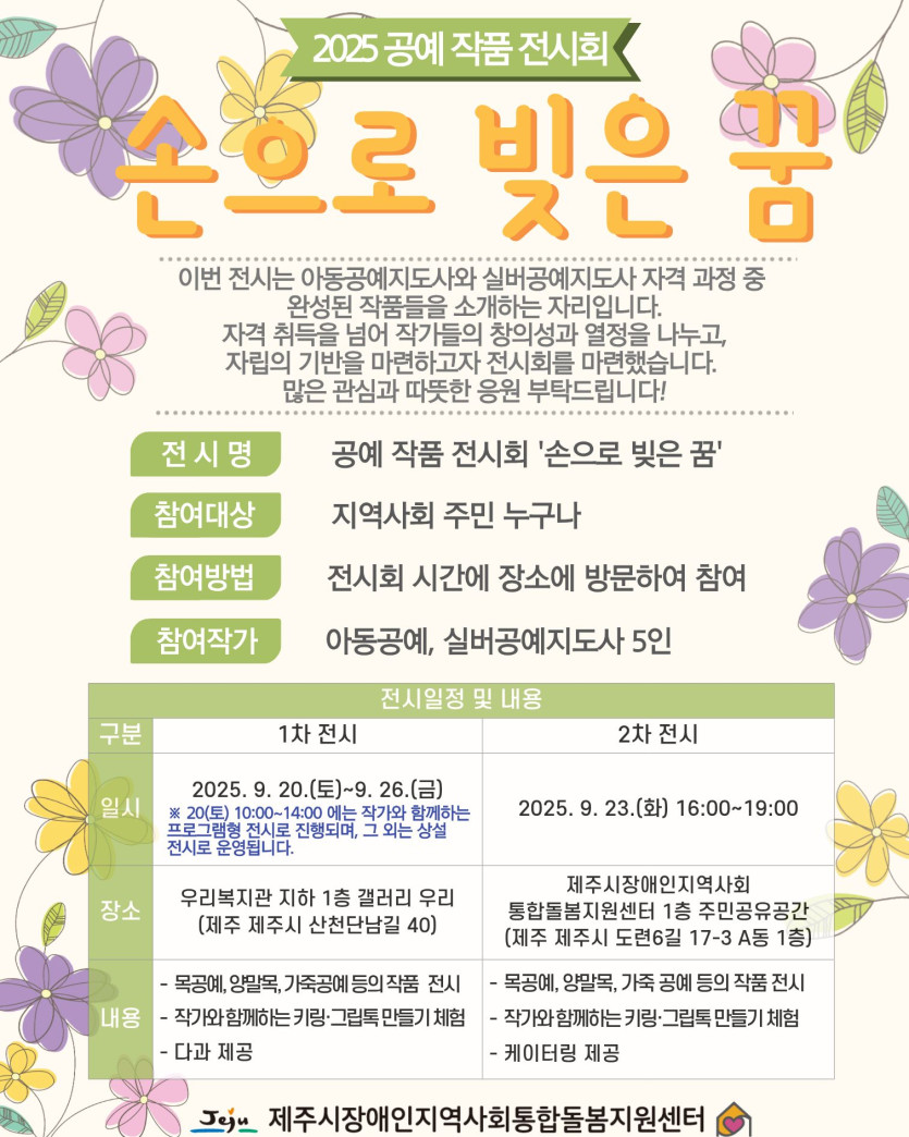 그 과정으로 완성된 공예 작품들을 지역 주민 여러분과 함께 나누고자 체험형 전시회를 마련하였습니다.