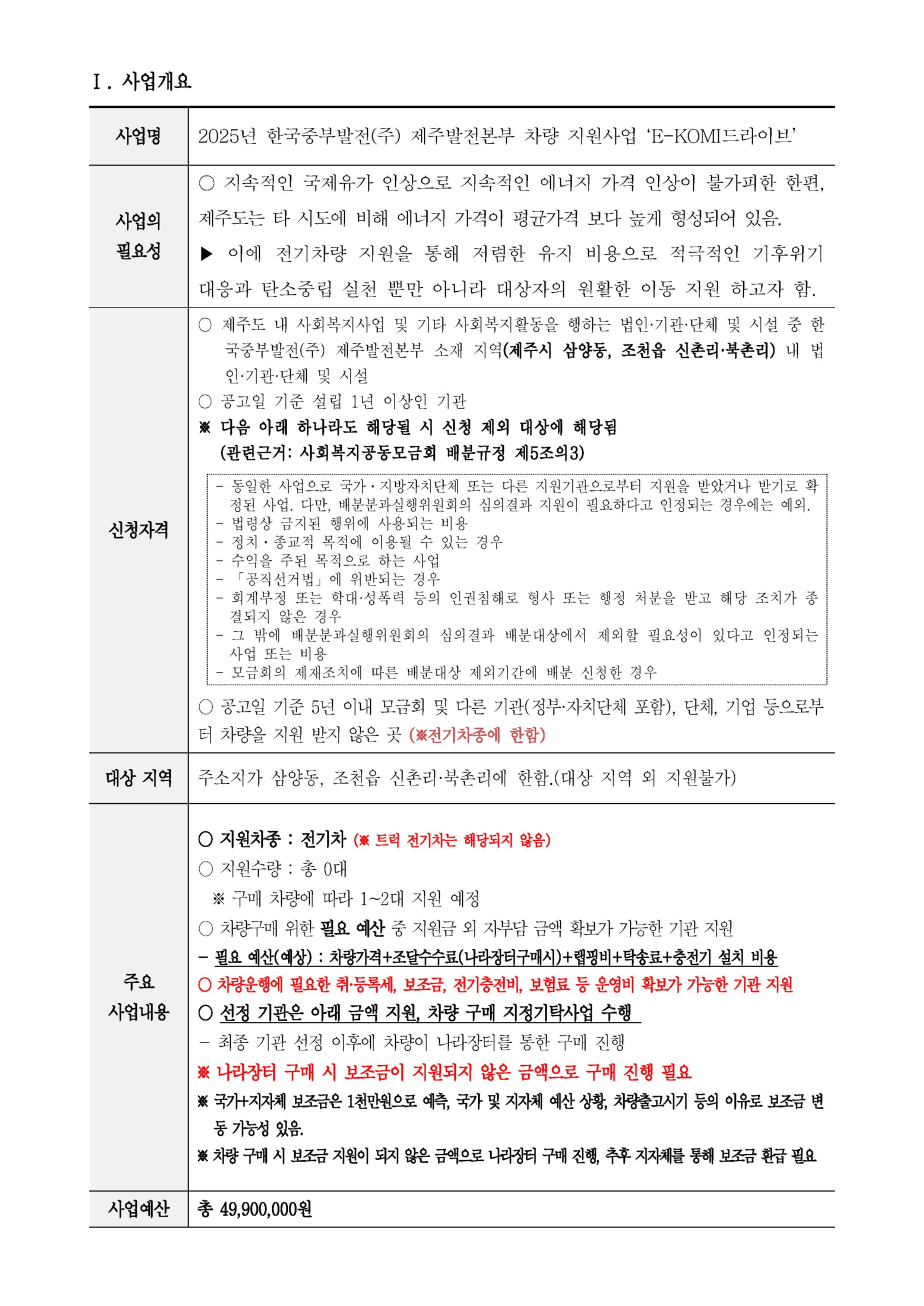 [사랑의열매] 한국중부발전(주) 제주발전본부 차량지원사업 공모