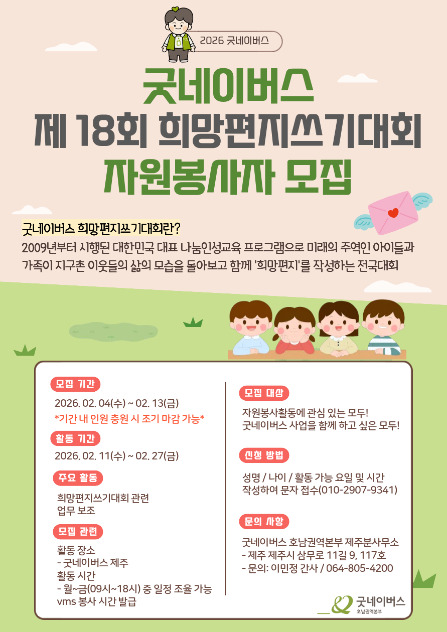 (모집 마감) [굿네이버스] 희망편지쓰기대회 자원봉사자 모집