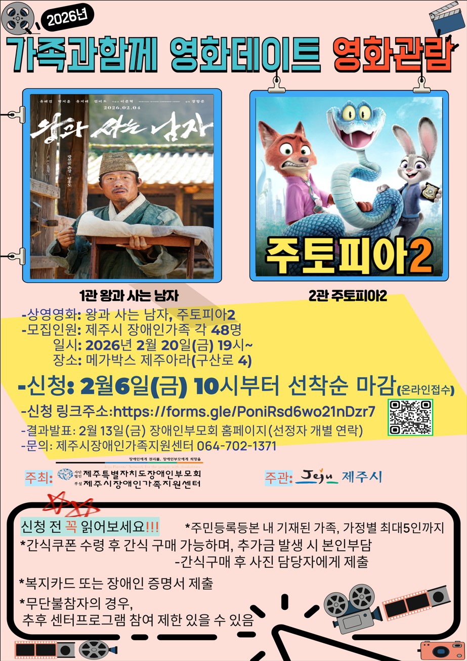 2026년 장애인가족휴식지원 영화관람 참여자 모집 안내