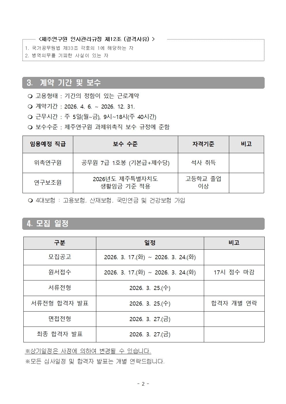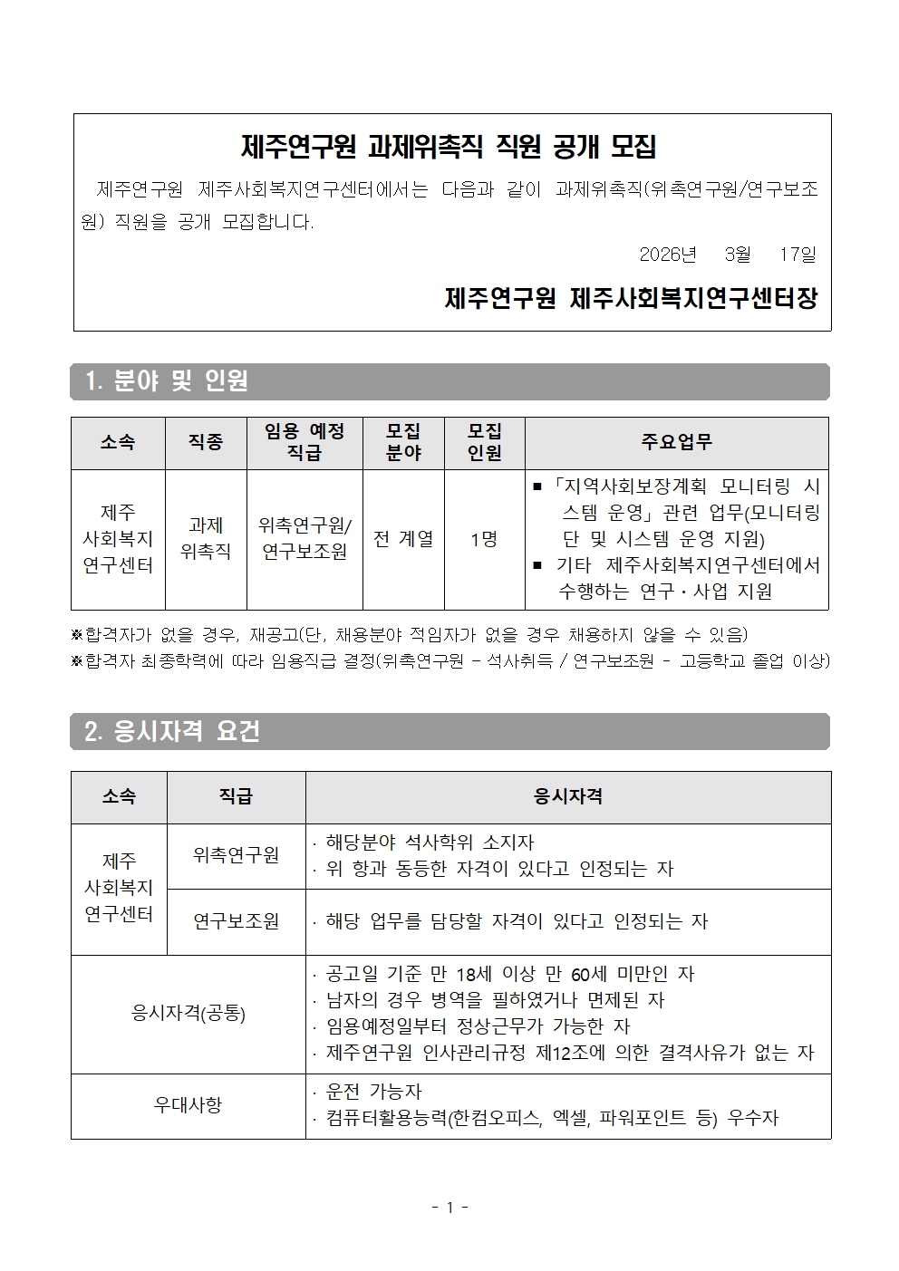 제주연구원 제주사회복지연구센터 과제위촉직 직원 공개모집