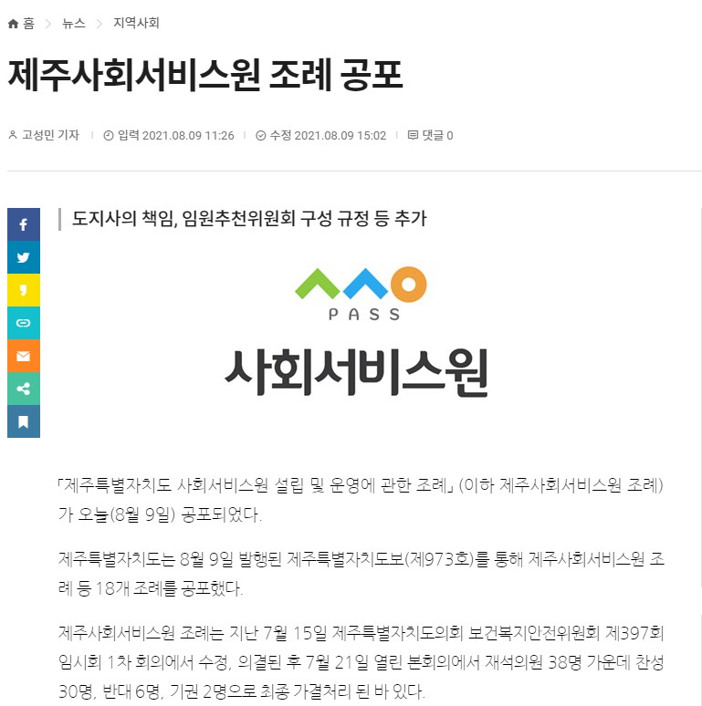 제주사회서비스원 조례 공포