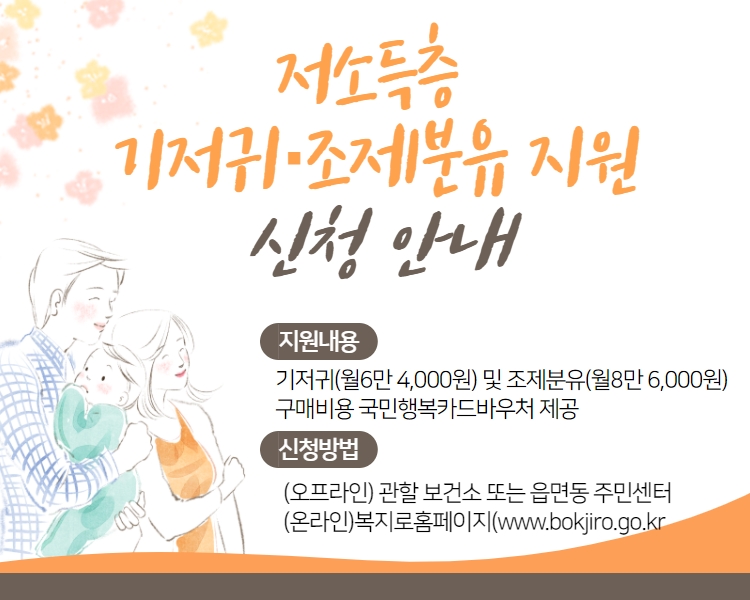 ※조제분유는 기저귀 지원대상자 중 산모가 사망 또는 특정질병(항암치료, 방사선치료, 후천성 면역 결핍증 등),