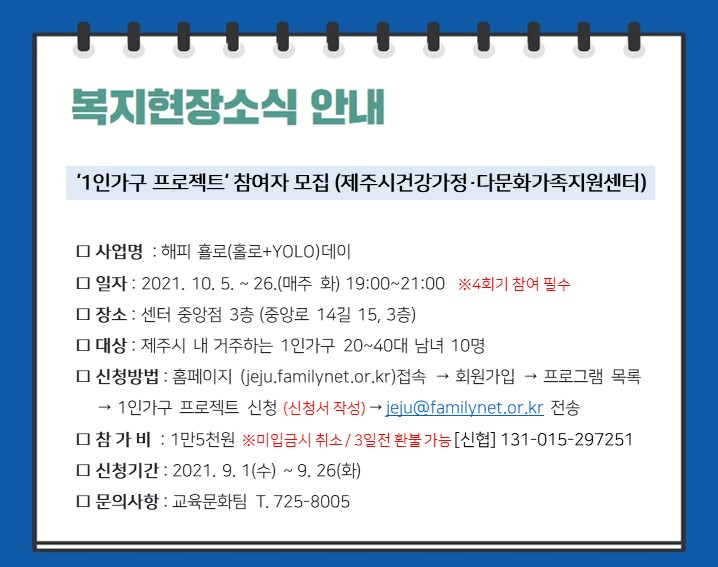 1인가구 프로젝트 '해피 횰로(홀로+YOLO)데이 모집 안내