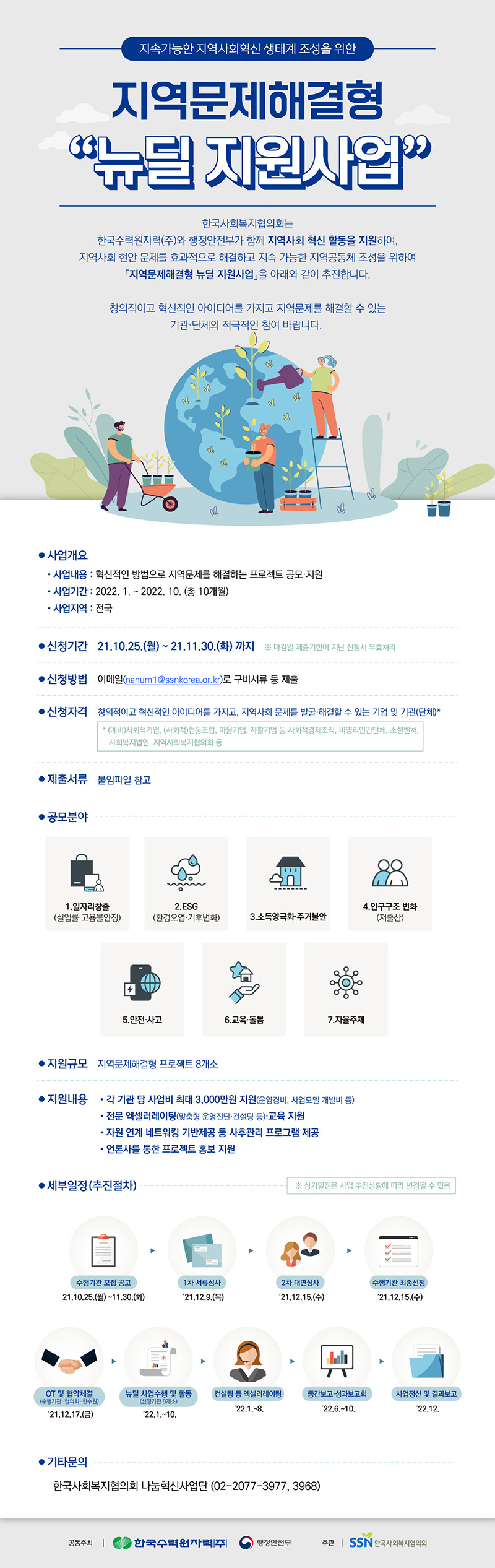 창의적이고 혁신적인 아이디어를 가지고 지역문제를 해결할 수 있는 기관·단체의 적극적인 참여 바랍니다.