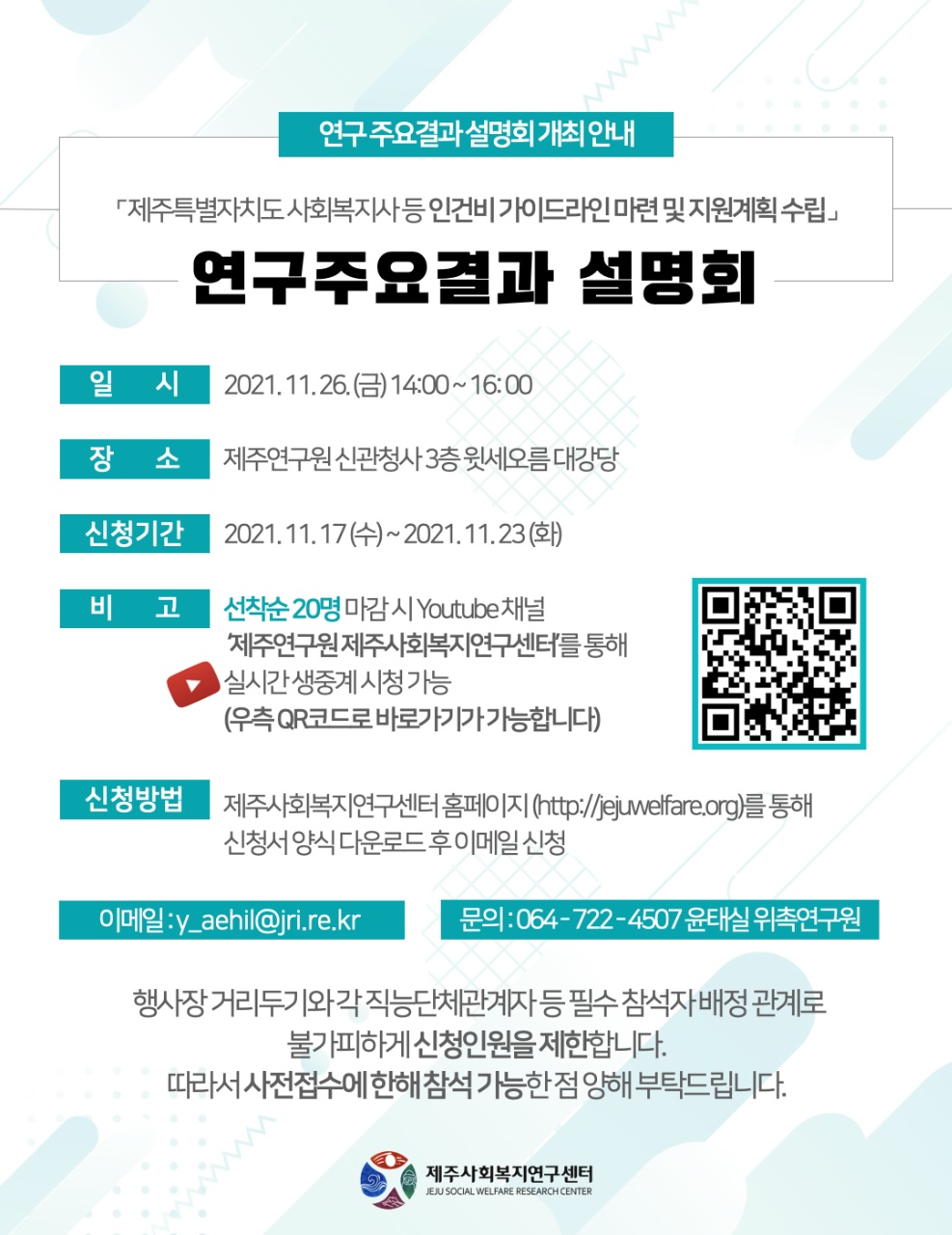 [제주특별자치도 사회복지사 등 인건비 가이드라인 마련 및 지원계획 수립] 연구 주요 결과 설명회 개최 안내