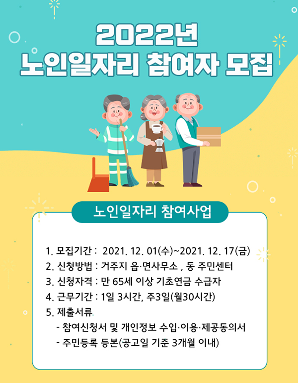 ※이미지를 클릭하시면 우리동소식 게시판에서 노인일자리 참여모집 정보를 확인하실 수 있습니다.