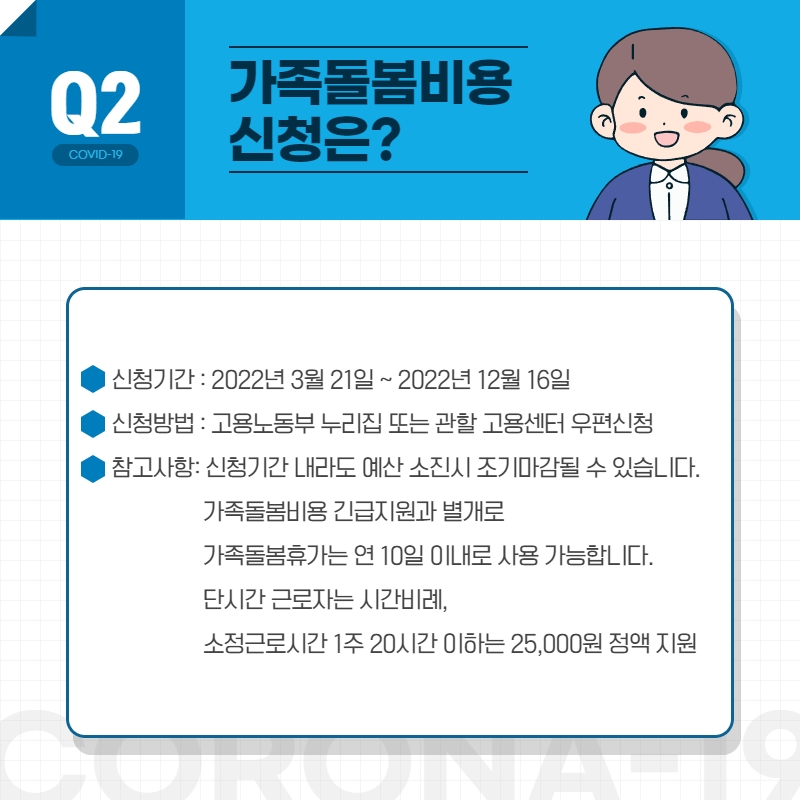 코로나19 가족돌봄비용 긴급지원사업 안내