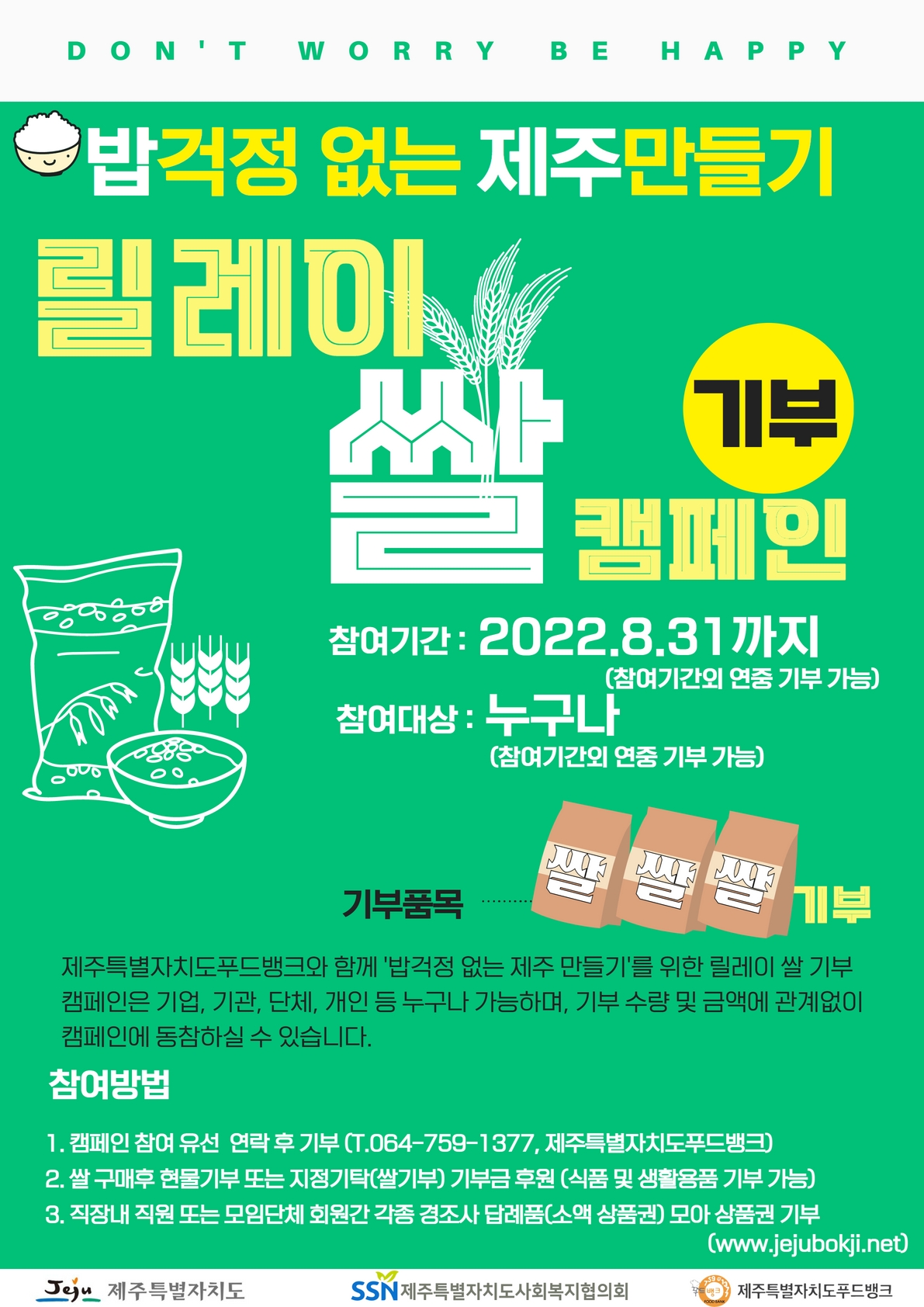 「밥걱정 없는 제주만들기 릴레이 쌀 기부캠페인」 안내