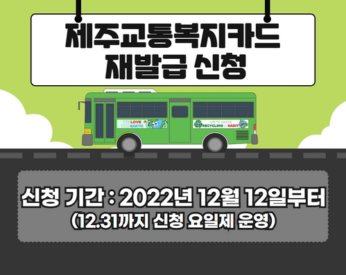 제주교통복지카드 운영관리 사업자가 제주은행에서 농협으로 변경됨에 따라 기존 사용자 재발급 필요