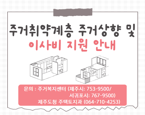 ❍ 문의처 : 주거복지센터(제주: 753-9500/서귀포시: 767-9500), 제주도청 주택토지과 064-710-4253
