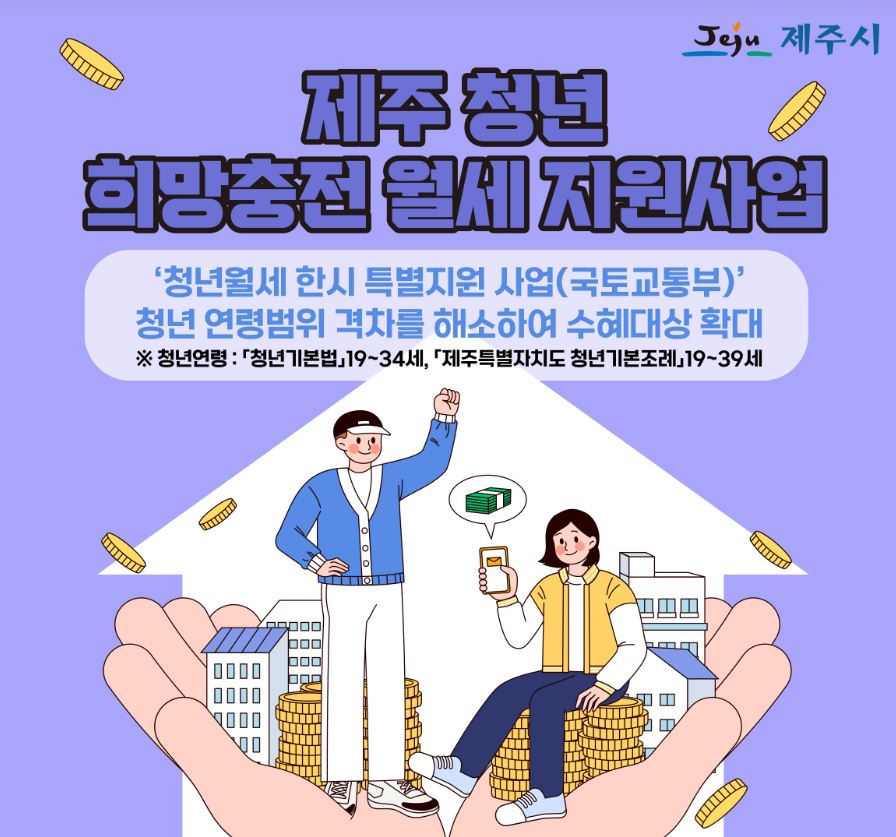 ❍ 지원대상 : 제주특별자치도에 주소를 두고 부모와 별도 거주하는 35~39세(1985년생~1989년생) 이하의 무주택 청년 세대주