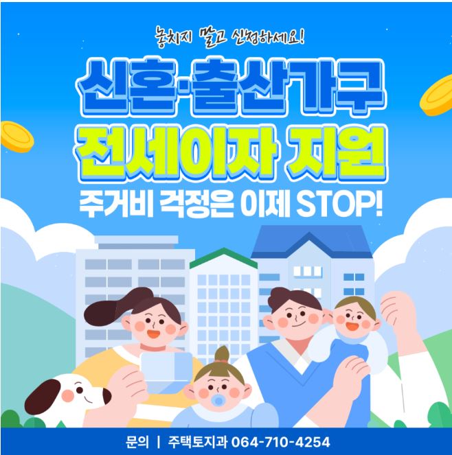❍ 지원대상 : 금융기관에서 주택 전세자금 대출을 받은 도민 중 신혼부부(신청일 기준 7년 이내 혼인신고한 무주택 가구), 출산가구(자녀를 출산한 무주택 가구)