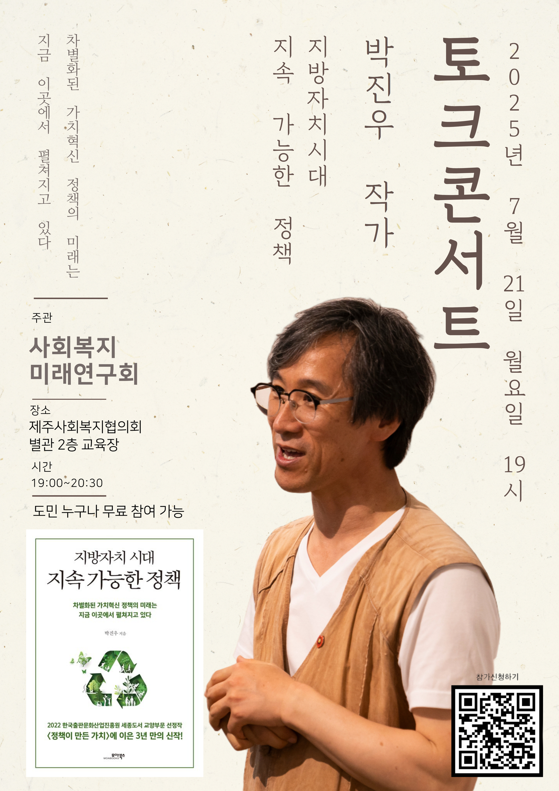 "지방자치 시대 지속 가능한 정책" 저자 박진우 작가 초청 토크콘서트 안내