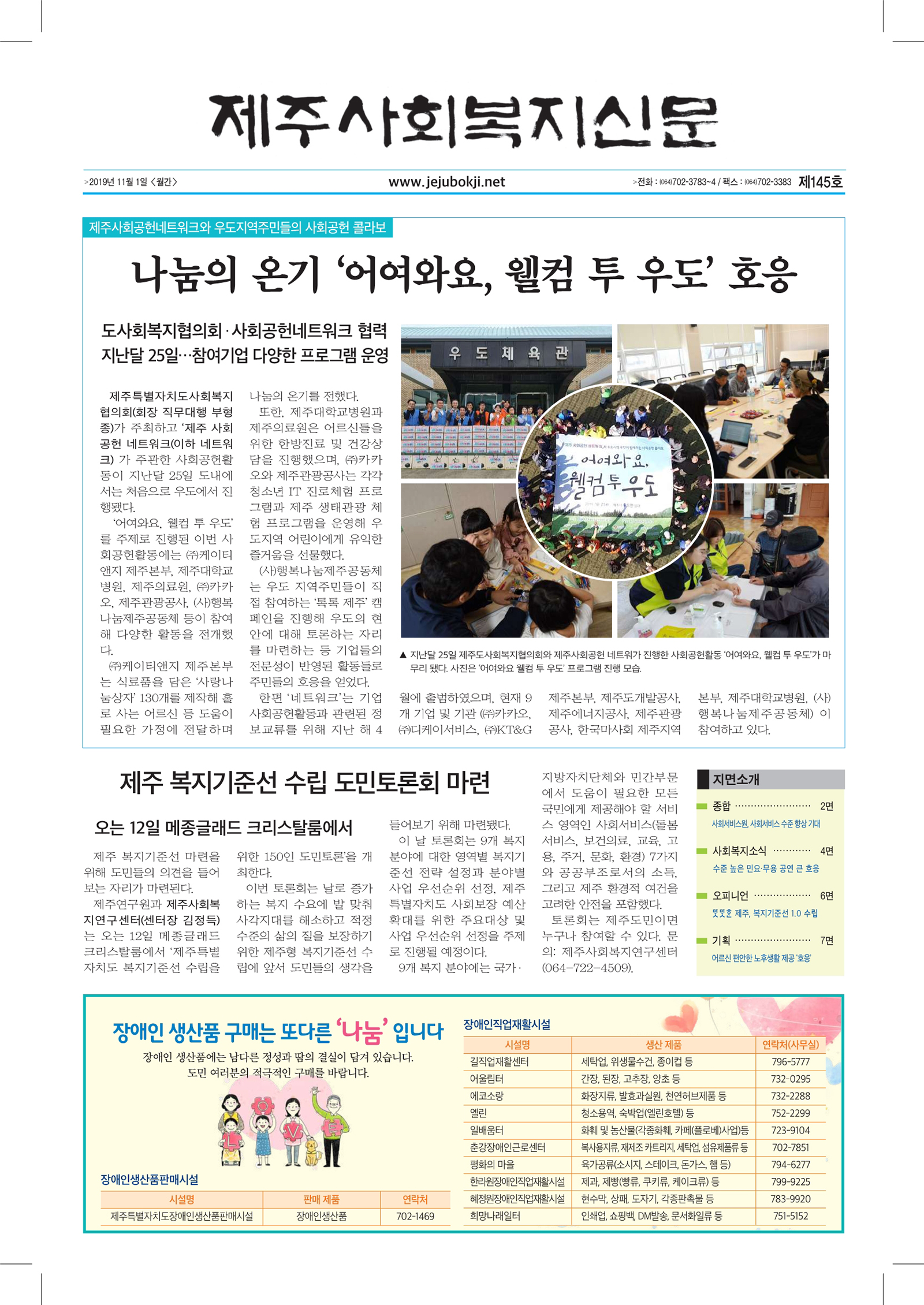 | 제주사회복지신문 제145호(2019.11.1) 지면소개 | |
