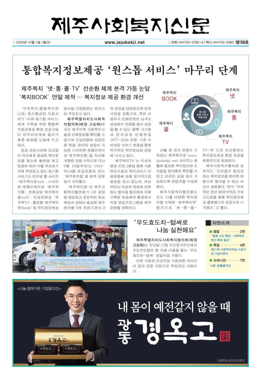 | 제주사회복지신문 제156호(2020.10.1)지면소개 |