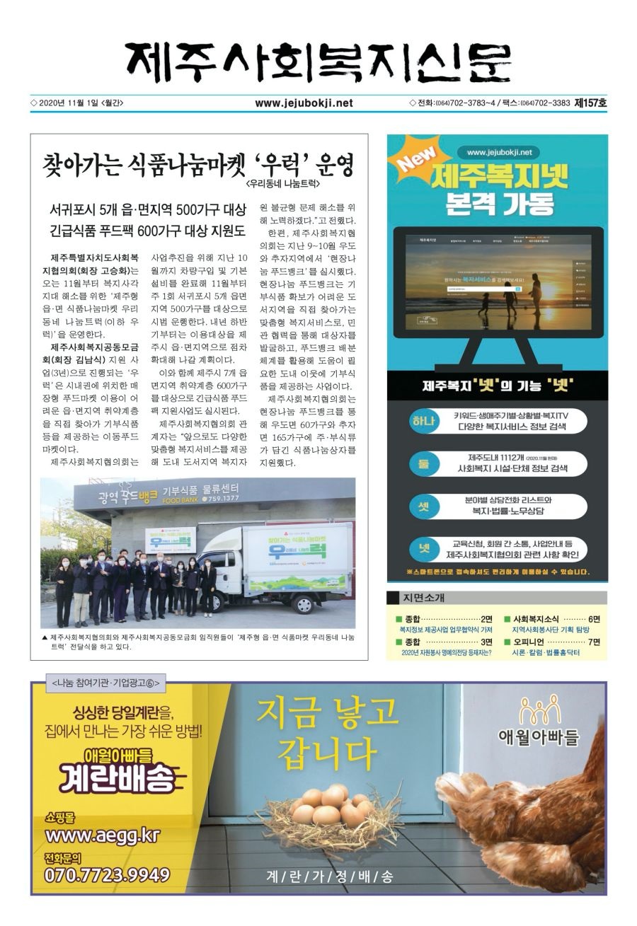 제주사회복지신문 제157호(2020.11.1) 지면소개