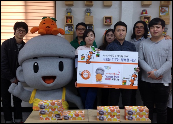 (주)시와월드(대표 우영진)은 지난 6일 제주특별자치도사회복지협의회(회장 고치환)에서 운영하는 제주광역푸드뱅크에 200만원 상당의 제주 꼬마하루방‘제돌이’캐릭터 감귤마카롱 200세트를 기탁해주셨습니다.