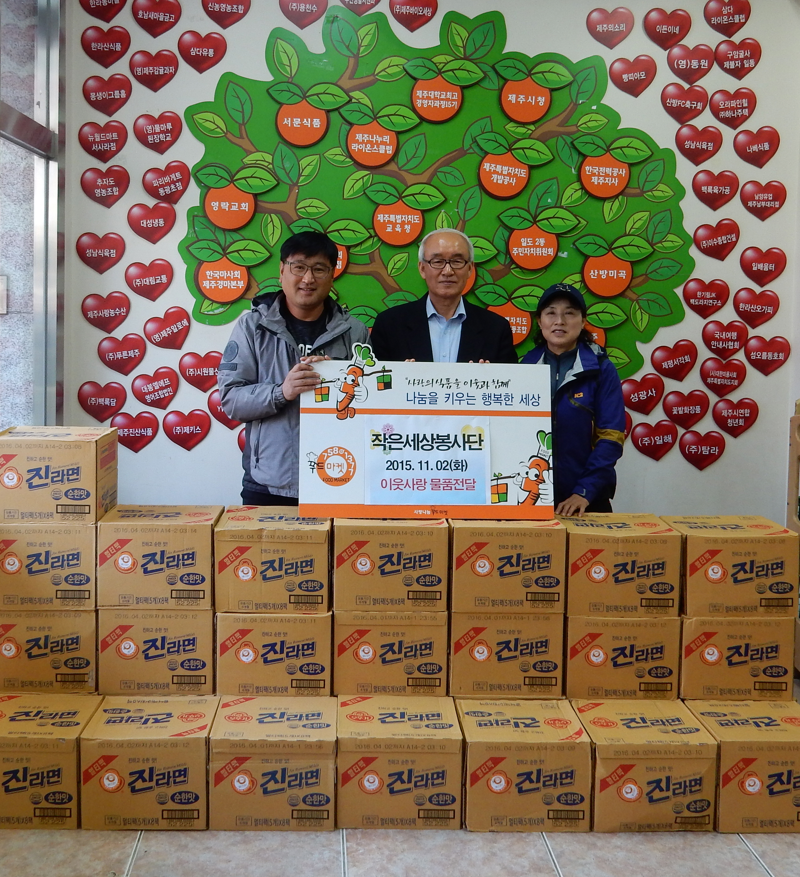 KT제주고객본부=1,200kg 강정란님=식용유8국제라이온스협회=1,000kg 간장등=497금강수산유통=수산물20kg 금강축산유통=돈육20kg 금산서당골=돈갈비157kg 김치원=김치40kg 꽃비나리는뜨락=428옥수한상사=요거트388상자 제주특별자치도개발공사=(2L*6)200동원F&B제주=동원식품2,711삼다유통=삼다수(2L*6)300서문식품=두부1,248신화유통=고추장등150싱싱부식=김치30kg 아름다운라면봉사단=라면30아라파파=54이든이네=건멸치9kg 자연드림연동점=208자연드림이도점=235제주보리촌=보리빵1,180진유통=뿌셔뿌셔5,280파리바게트동광초점=209행복나눔마트=비누176