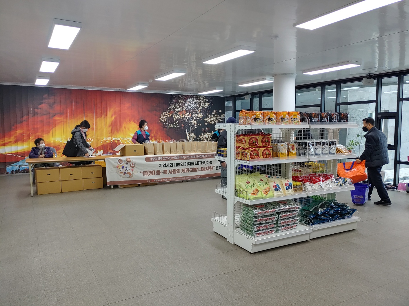 직접 찾아가 이동형 편의점 형태의 차량(1t트럭 개조)을 통해 기부식품을 제공하고