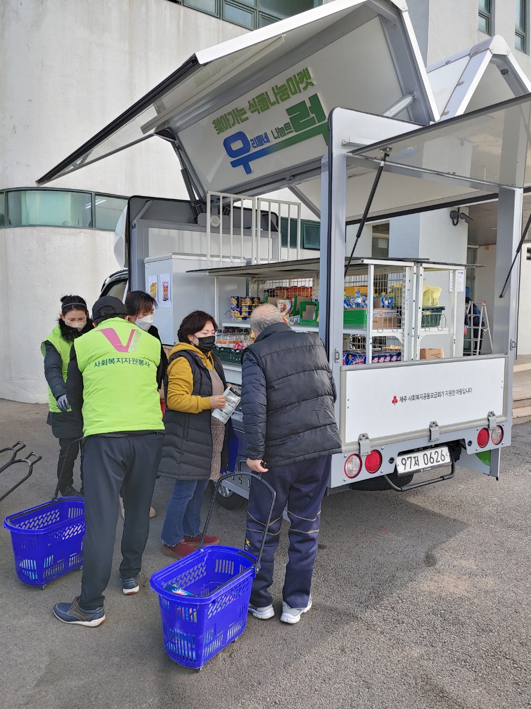 직접 찾아가 이동형 편의점 형태의 차량(1t트럭 개조)을 통해 기부식품을 제공하고