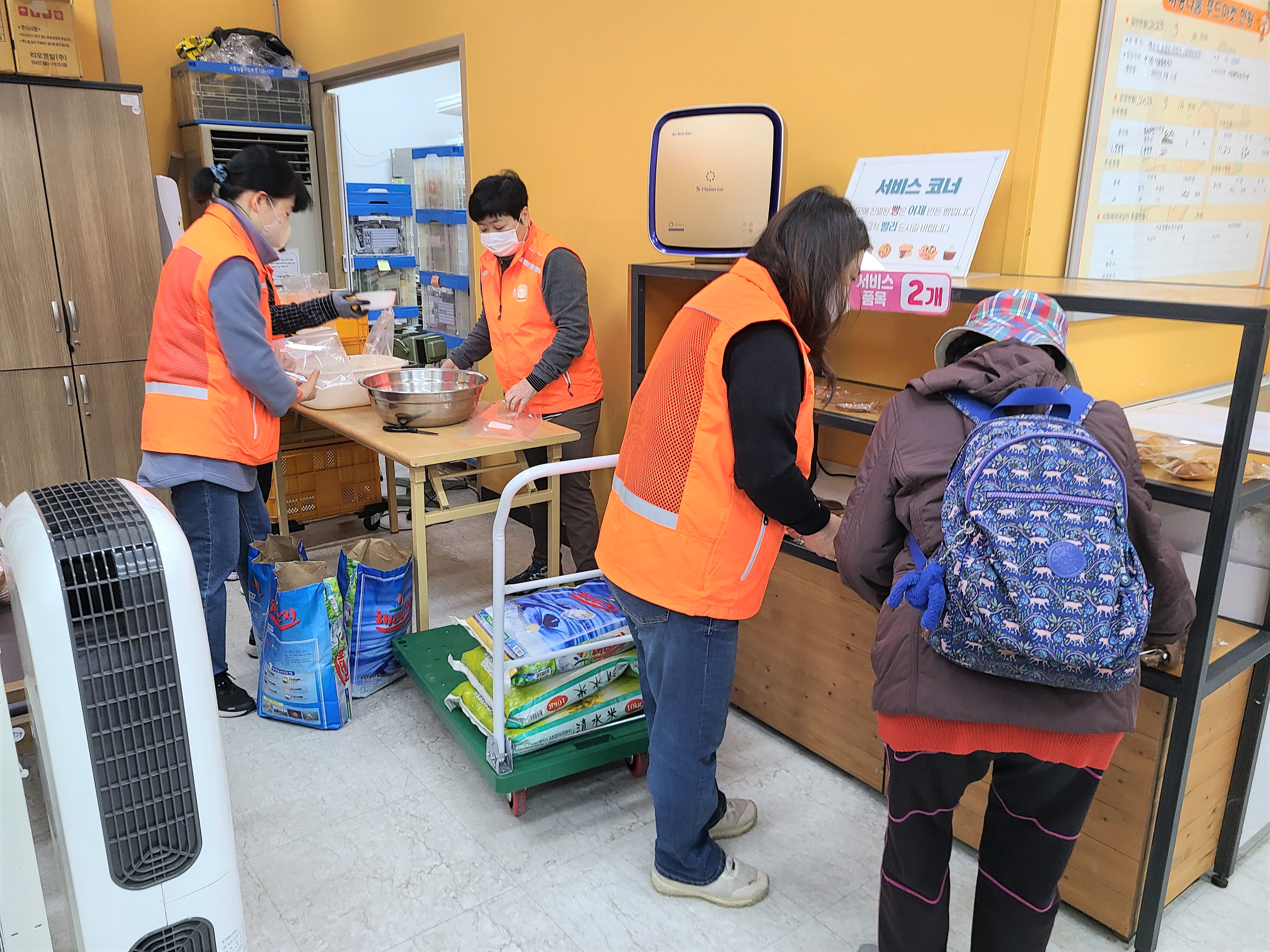 매월 주말운영 때마다 우리 협의회의 작은세상봉사단에서 함께 참여해 매장 환경정리와 식품 진열,