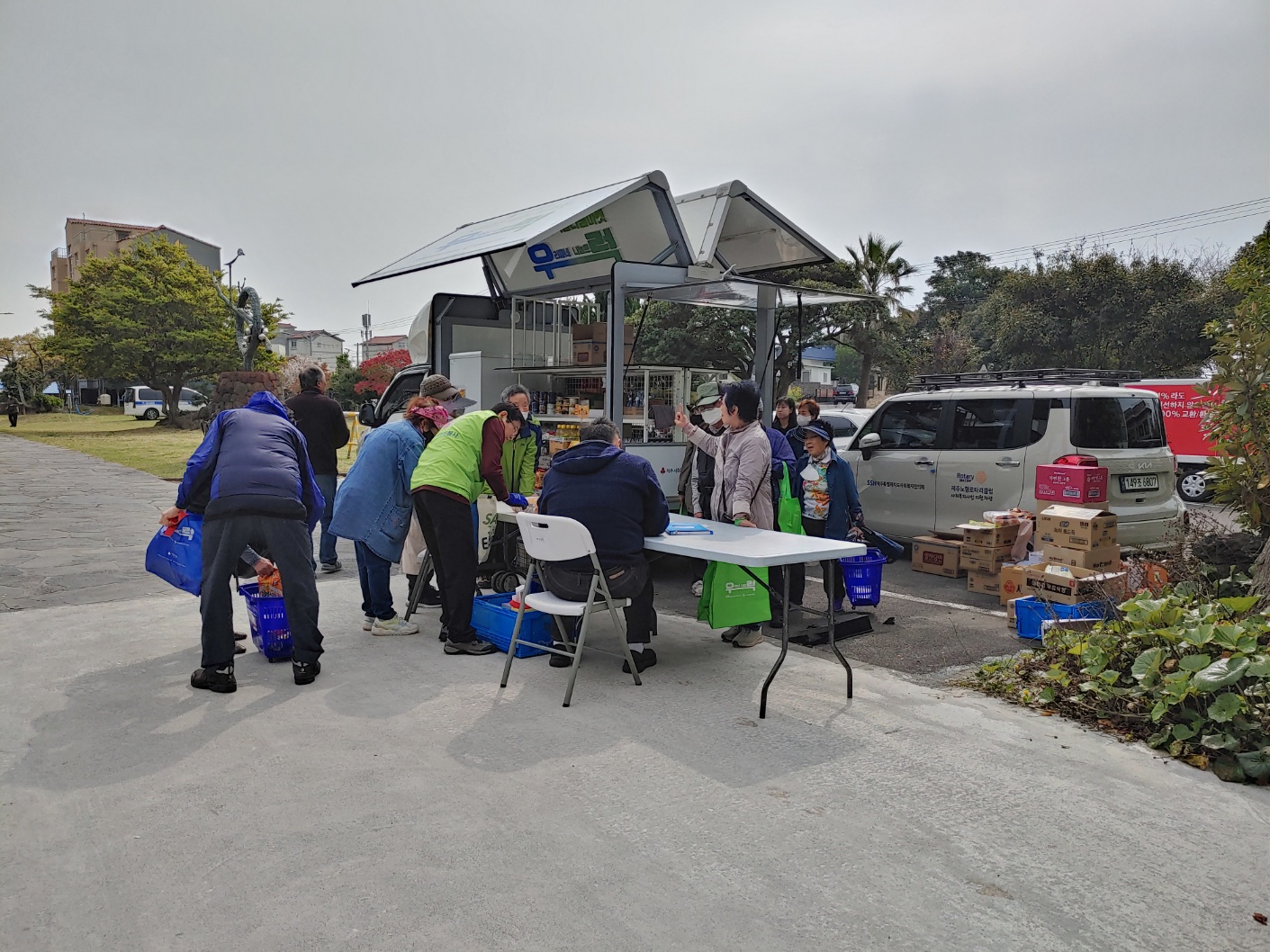 직접 찾아가 이동형 편의점 형태의 차량(1t트럭 개조)을 통해 기부식품을 제공하고