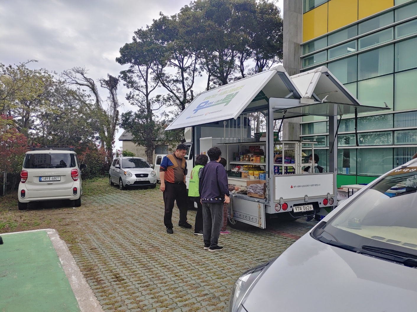 직접 찾아가 이동형 편의점 형태의 차량(1t트럭 개조)을 통해 기부식품을 제공하고