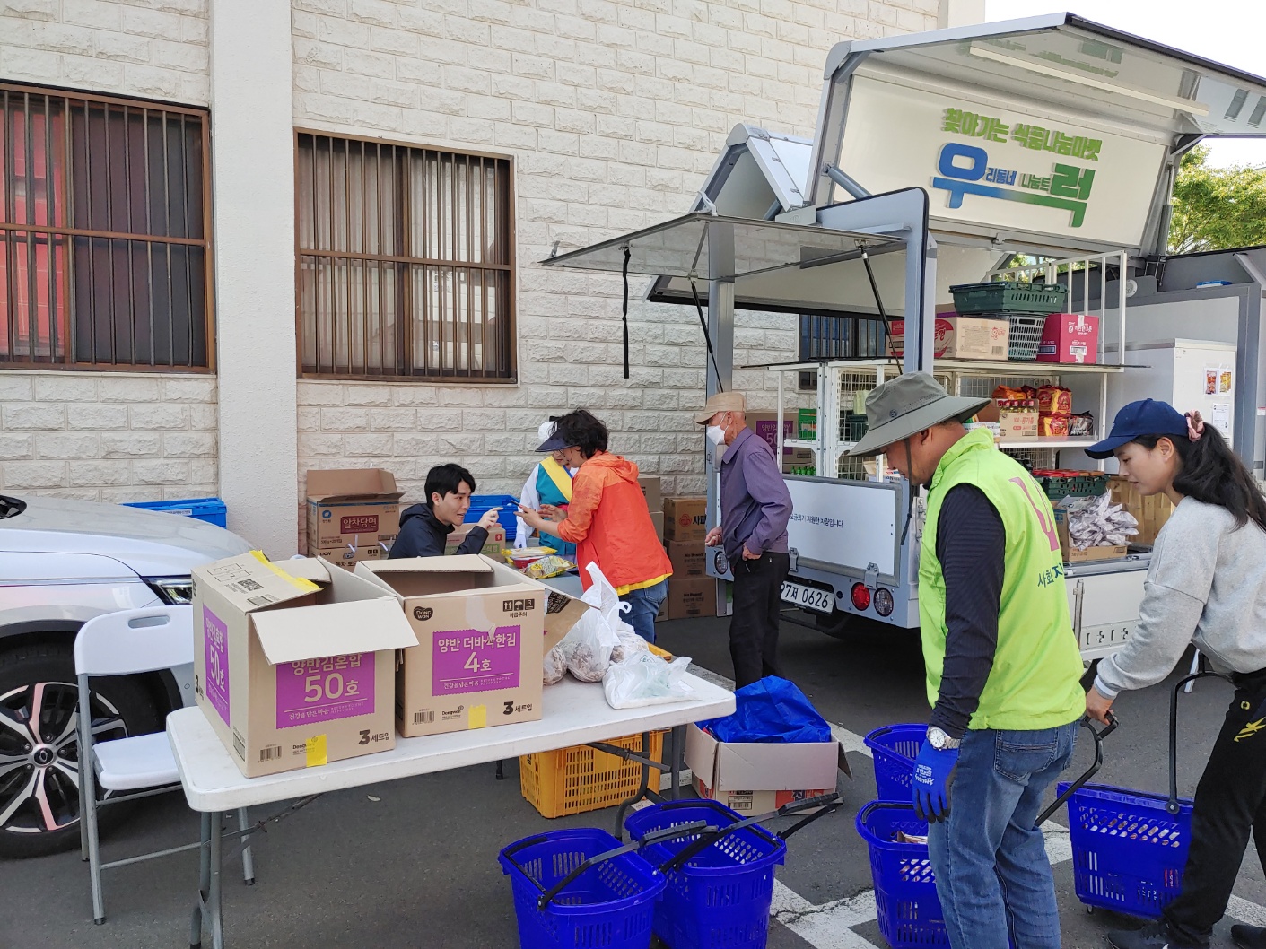 직접 찾아가 이동형 편의점 형태의 차량(1t트럭 개조)을 통해 기부식품을 제공하고