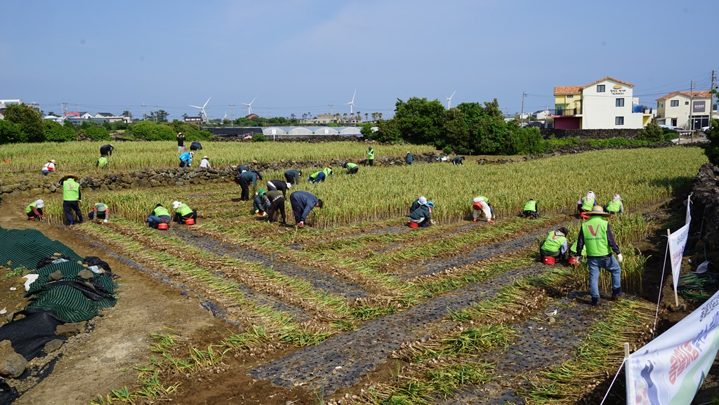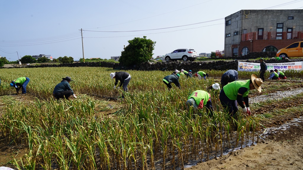 구좌읍 월정리 마늘밭 농가를 방문하여 마늘수확 봉사활동을 실시했습니다. 😍