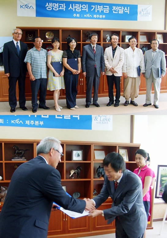 우리 협의회 고경윤 상근부회장은 지난 7. 20일 한국마사회 제주본부에서 치러진 기부증서 전달식에 참가하여 "저소득층 생활개선사업"지원금 기부증서를 전달받았습니다.