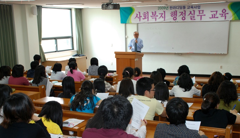 한라대학 사회복지과 2학년 재학생 100여명을 대상으로 한 "사회복지행정실무교육"이 지난 5. 29일(금) 한라대학 사회복지과 강의실에서 시행되었습니다.