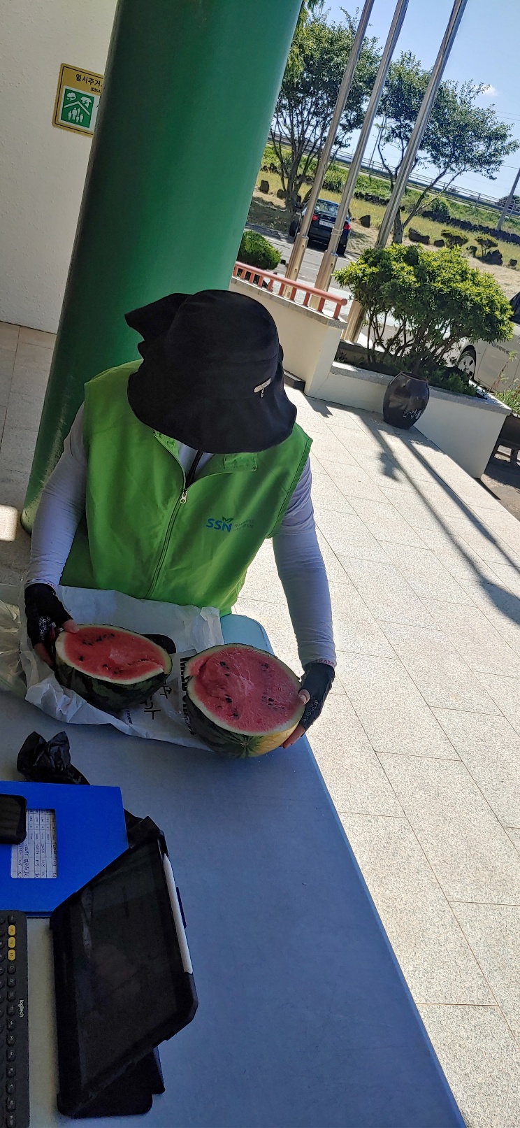 3. 손뜻모아봉사회 회장님이 수박 한 통을 가져오셔서 무더위를 넉넉히 이겼습니다.