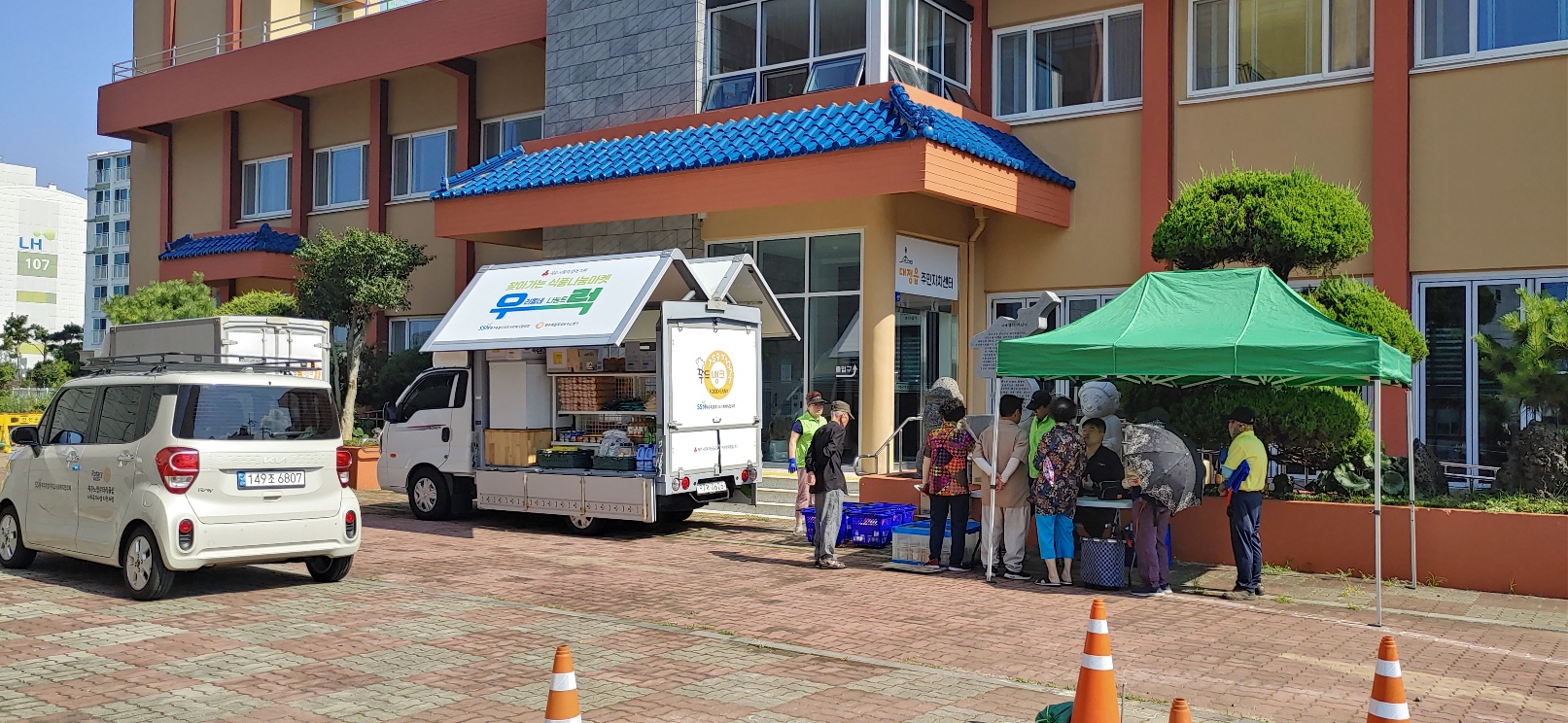 직접 찾아가 이동형 편의점 형태의 차량(1t트럭 개조)을 통해 기부식품을 제공하고