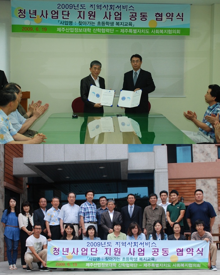청년사업단 지원사업으로 추진되는 "찾아가는 초등학생 복지교육"을 위한 우리 협의회와 제주산업정보대학간의 업무협약식이 7. 16일 우리 협의회 회관에서 개최되었습니다.