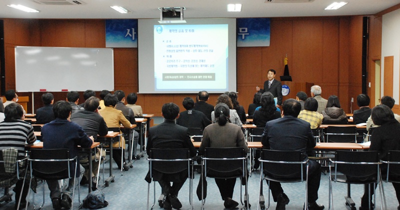 사회복지 아카데미 12월 교육프로그램 - "사회복지 계약업무 실무"교육이 12. 8(화) 사회복지종사자 60여명이 참가한 가운데 시행되었습니다.