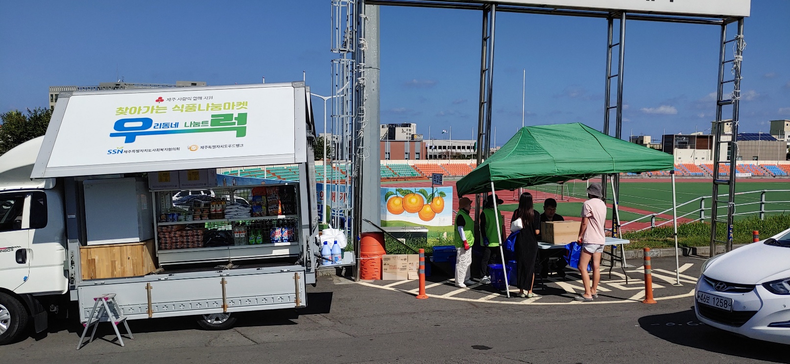 직접 찾아가 이동형 편의점 형태의 차량(1t트럭 개조)을 통해 기부식품을 제공하였습니다.