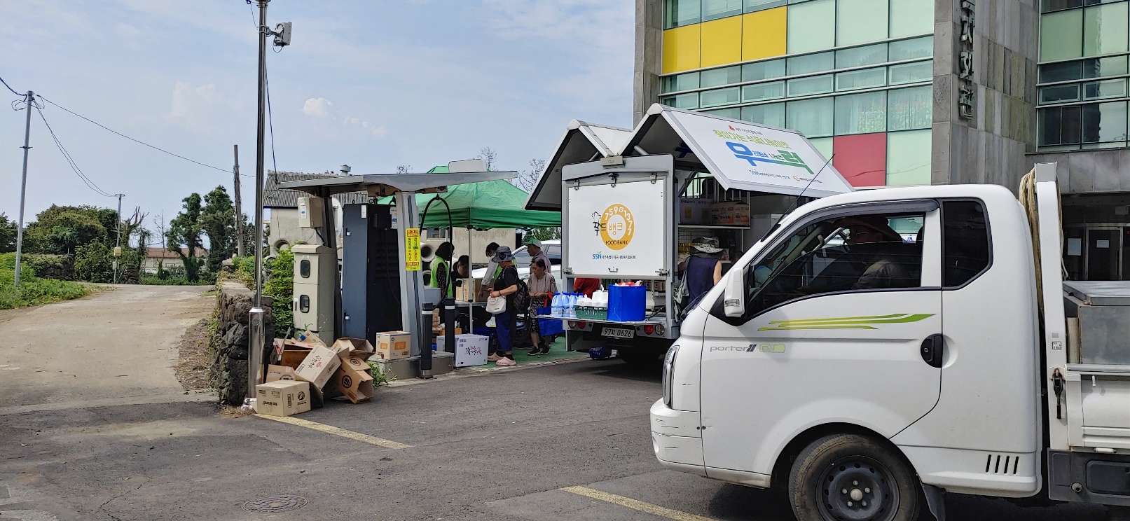 직접 찾아가 이동형 편의점 형태의 차량(1t트럭 개조)을 통해 기부식품을 제공하였습니다.