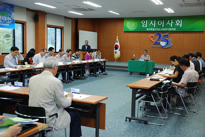 2011년도 제1차 임시이사회가 우리 협의회 법인임원 23명이 참석한 가운데 협의회 2층 삼다수홀에서 진행되었다.