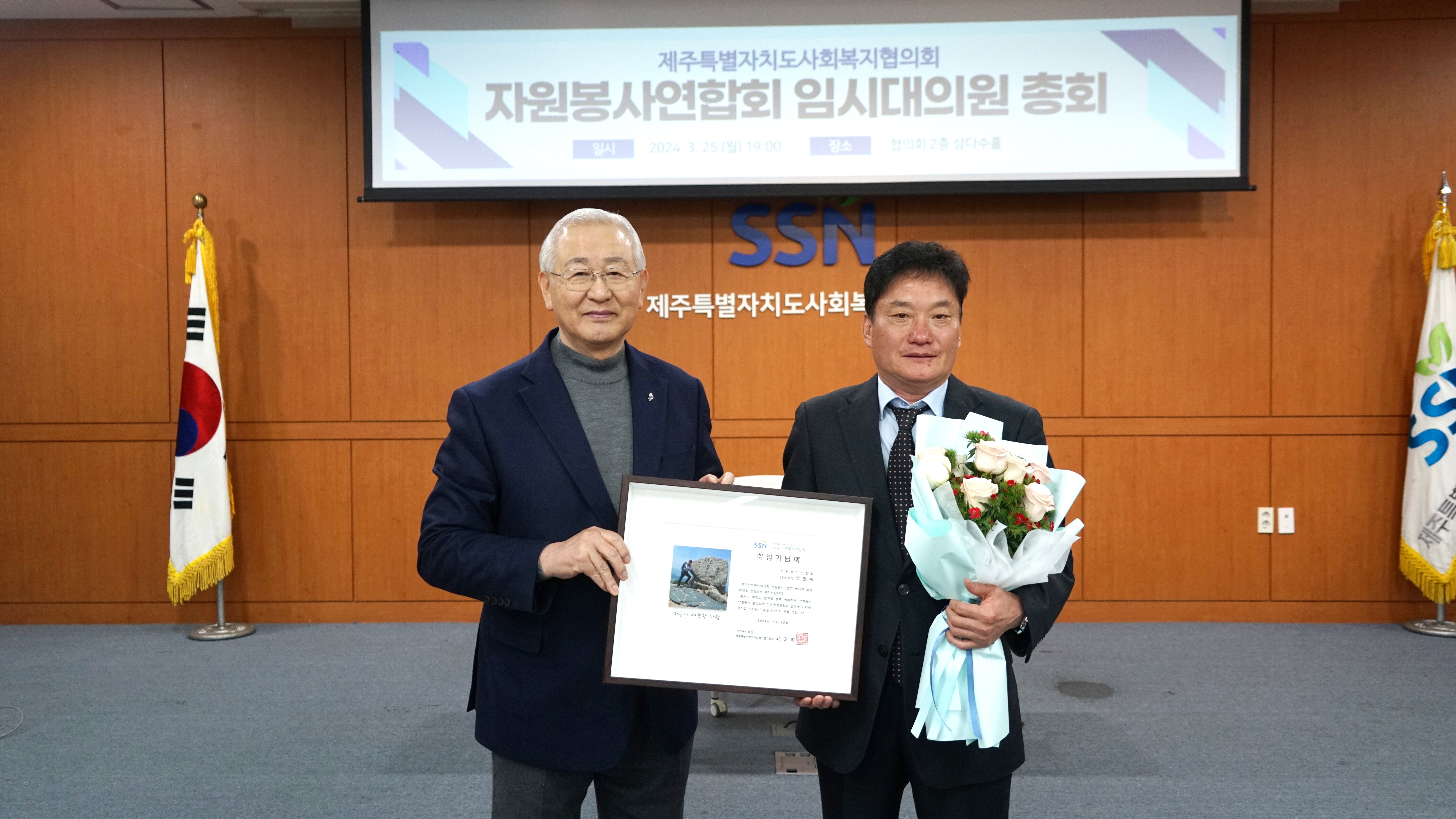 또한 제12대 자원봉사연합회 회장으로 선임되신 정찬욱 회장님께는 취임기념패를,