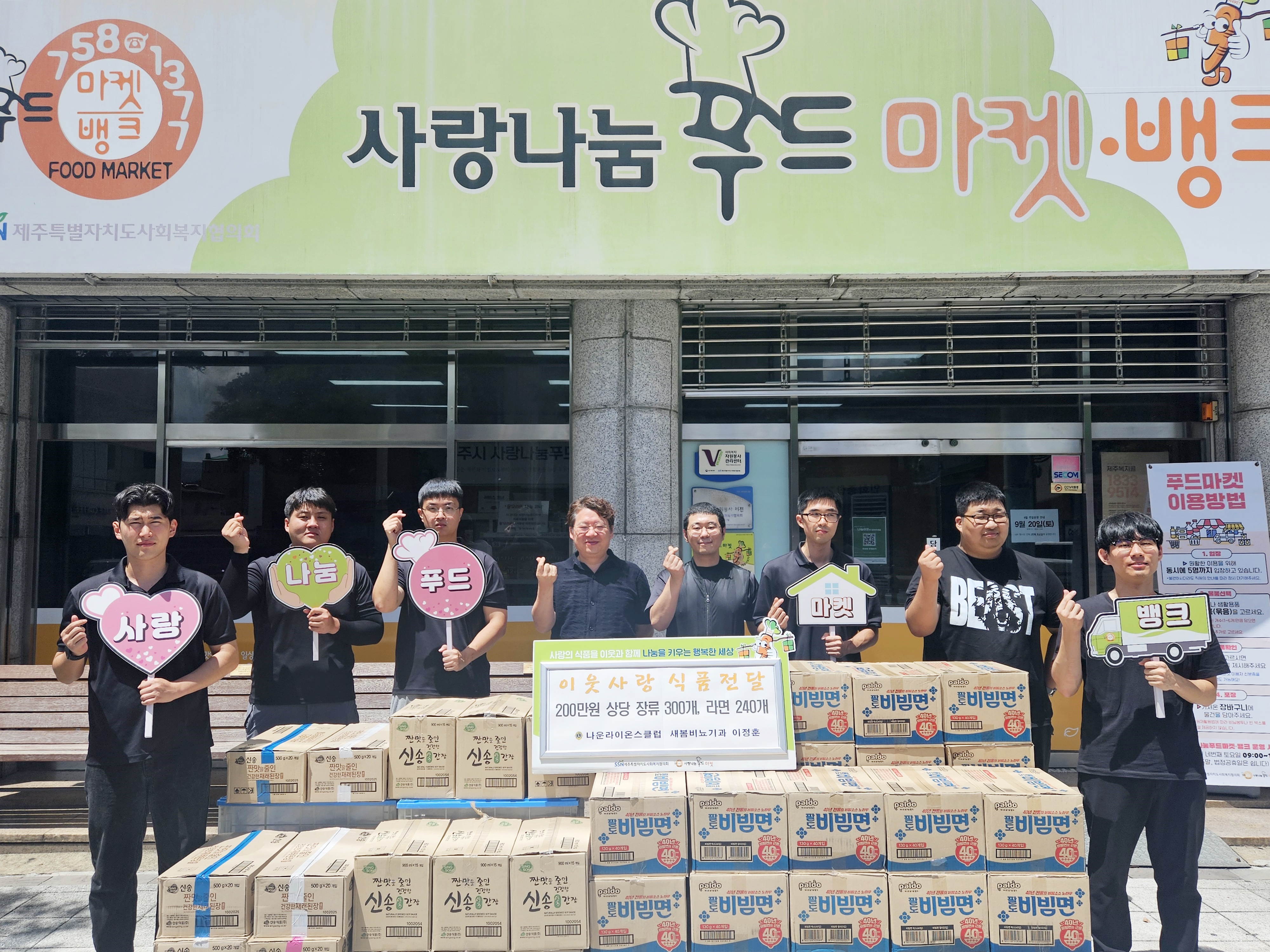 지난 8월 13일, 나운라이온스클럽 회원 이정훈(새봄비뇨기과 원장)은 우리협의회(회장 고승화)에서 운영하는 사랑나눔푸드마켓·뱅크 200만원 상당의 된장, 간장 등의 장류 300개와 라면 240팩을 전달해주셨습니다.