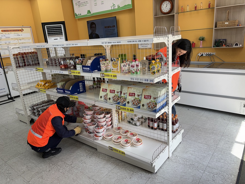푸드마켓 운영지원(물품 진열, 환경정비 등)을 함께 해주셨습니다.