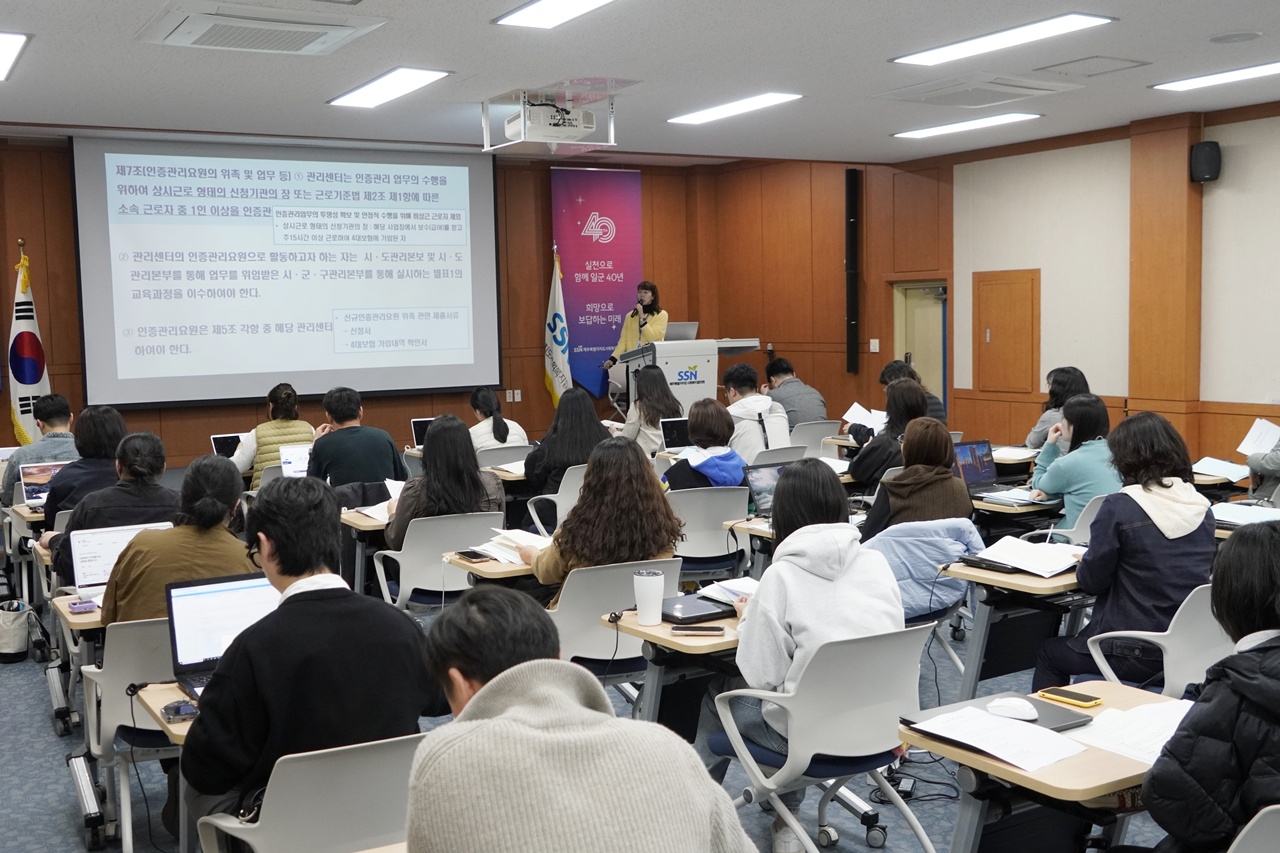 이날 교육은 개정(2026. 1. 1. 시행)된 사회복지 자원봉사 관리규정과 자원봉사활동실적 인증 기준 등에 대한 안내와