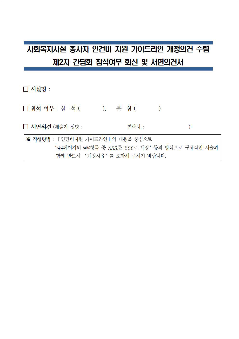 「사회복지시설 종사자 인건비 지원 가이드라인」 간담회 서식 안내