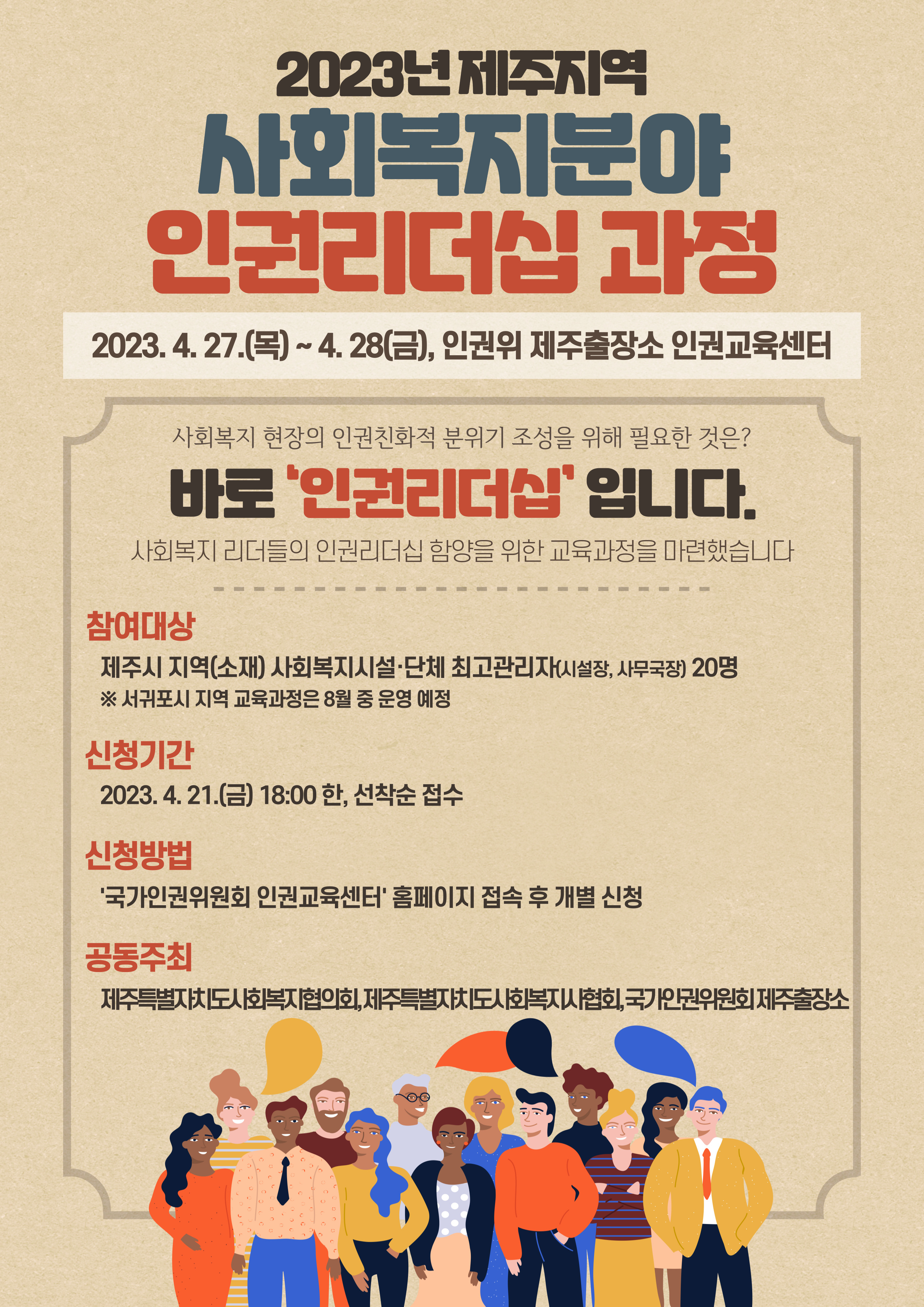 「2023년 제주지역 사회복지분야 인권리더십 과정」 참가 신청안내