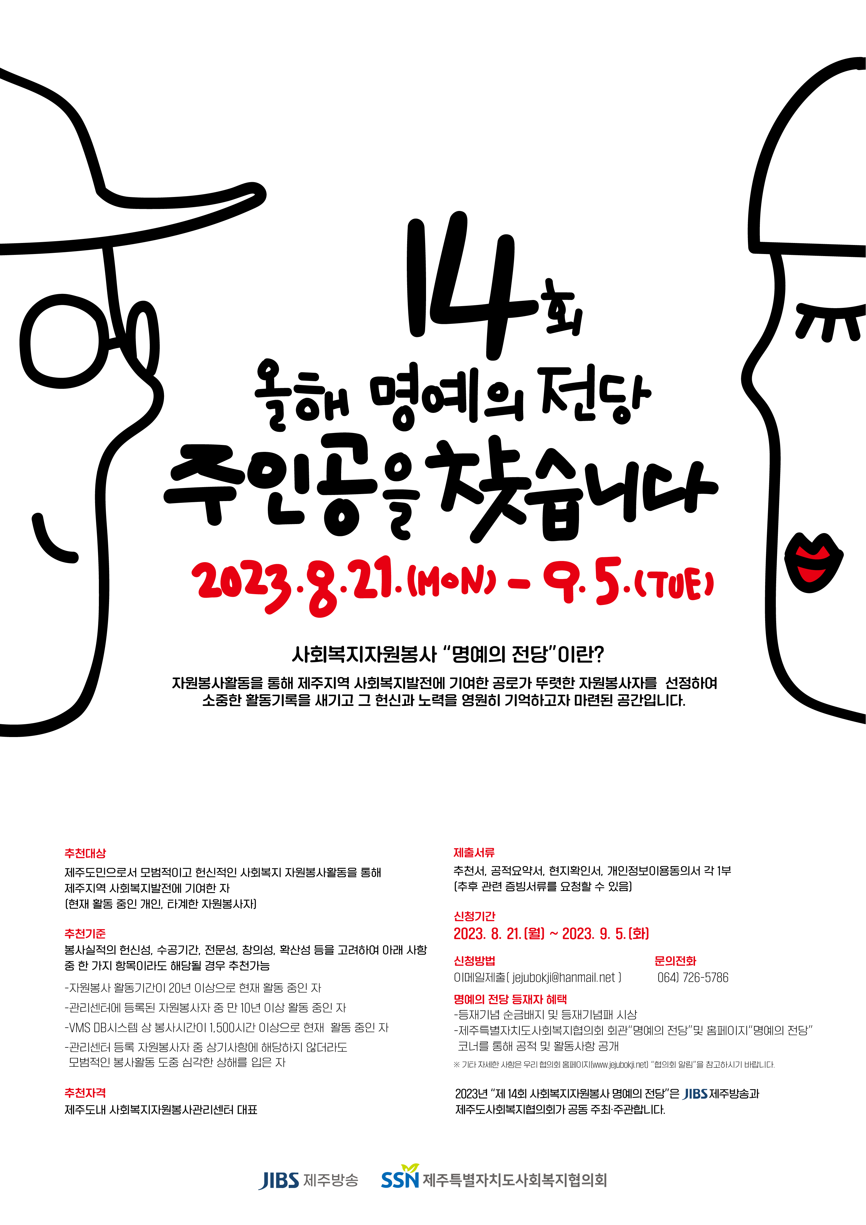 제14회 사회복지자원봉사 명예의 전당 등재 대상자 추천 안내