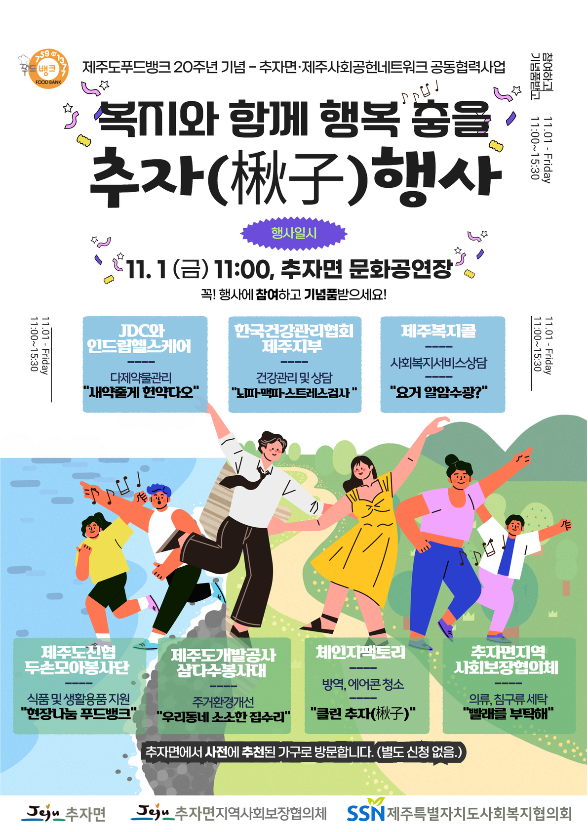 프로그램 행사가 11. 1(금) 11:00~15:30 추자면 문화공연장 및 추자면 일원에서 진행됩니다.